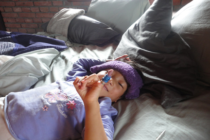 For example, the other day Ang Maya had a stainless steel ring stuck on her finger! Nobody seemed to know where the ring came from, but she put it on her finger and her sister Bina pushed it down until it stuck.