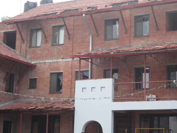 Early in May, Ama Ghar had its own version of the tragic tornadoes that have blown through Oklahoma. Around midnight on May 6, there was a heavy downpour of rain – a huge, booming thunderstorm with horrendous winds. The wind blew the rain under the balcony doors all the way across the house and swirled like a tornado. The tiles on all overhanging roof areas were lost – and everyone was very scared!